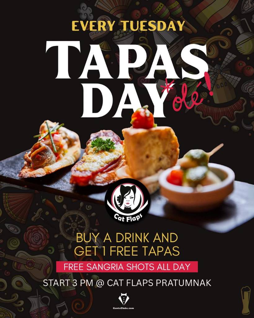 Heads up, flavor lovers! 📣 Tomorrow is TUESDAY, and at Cat Flaps, Tuesday means one thing: TAPAS DAY!
